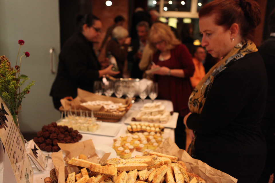 Apicius students and faculty staged the Astor Center event on October 25th. Four different buffet stations ranging from appetizers to primi pasta dishes, meat-based secondi and elegant desserts, were featured with wines from the Santa Cristina estate. Our team enjoyed this venue because of the wide variety of foods guest could choose from, instead of a set menu with a specific order of courses. The theme was diversely represented by the buffet stations, which reflected all aspects, colors and tastes of the Italian Riveria. Pastry student Kelsey Richards explains the diversity in detail, “My favorite part was setting up the baci di alassio (a chocolate sandwich cookie filled with cream) pyramid tower of cookies. I am particular to the decoration and presentation of pastries, this event allowed me to display an abundance of different desserts.” Not only did the buffet style give guests more options but it also made for a more social setting as practiced regularly by the Italians at aperitivo.