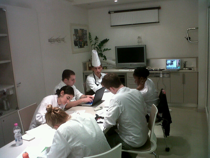 Wine management classes have also been in session all week with Camilla Carrega teaching them about different varietals of wine. They are now learning more about Chianti specifically and will start testing the wines that will be served at the James Beard events. Sangiovese grapes are used to make Chianti wine. Common characteristics of the wine consists of high acidity, deep red in color, has flavors of black fruit and violet, and is wood aged which increases tangents and complexity. Chianti has been known to be produced as early s 1398, but it wasn’t until 1872 until Baron Bettino formulated the first blend containing Sangiovese, Canaiolo Nero, and Malvasia Blanca. By the mid 1900’s Chianti was being produced mostly out of quantity and not quality, which diminished image of the wine. 1960 Chianti was revised so that it was a full body wine. The producers began adding international varietals in aged barrels and the Supertuscan blend was a mix of Cabernet, Sauvignon, and merlot that would be added to the local Sangiovese. Soon, DOC and DOCG were put into place in order to protect the quality and integrity of the wine being produced. The blend of Chianti must be at least eighty percent Sangiovese grapes with twenty percent local or international red grapes that is aged for at least one year. Classes end with a tasting of wines in order for the students to test what they had learned. They practice looking at the wine, swirling, sniffing, and tasting it in order to completely appreciate the wine. Camilla tests the students to see if they can pick up on the different colors, smells, flavors, and tangents in the wine.