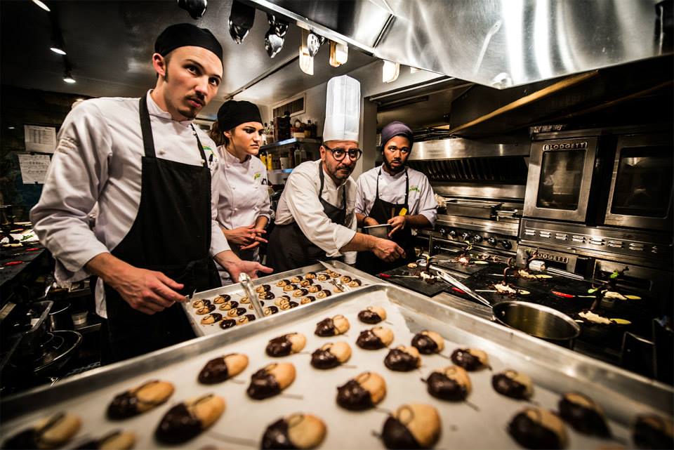 There were some strong, show stealers from the menu that captivated diners. The carta fata used in the acqua pazza sea bass preparation/presentation was a definite wow factor for the guests who really enjoyed the surprise contained in the transparent baking paper. After an ecstatic response from both NJCU and HSFI for eye-popping and sophisticated desserts, our pastry brigade yet again stole the crowd with Chef Simone’s “Tree of Life” dessert. Literally shaped like a tree shaped from chocolate and arising from a mound of cake and mousse, the dessert represented the rebirth of classic Tuscan desserts in a way that was both symbolic and visually stimulating.