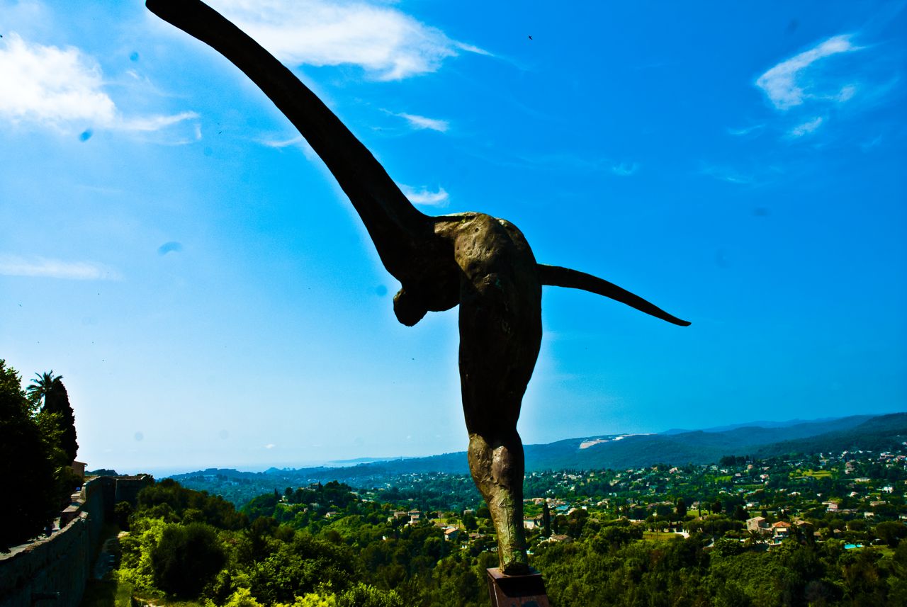 Saint Paul de Vence is beautiful, medieval architecture chipping away with history, a soft breeze whispering through every street as if to welcome visitors, and an exquisite waltz of light and shadow.  Every inch is teeming with life.  The wind-torn ramparts of centuries passed are now home to a variety of plant-life: grasses, flowers, fungi, etc.  All living out their quiet little lives in this quiet little diamond in the mountains. A town overflowing with artists, Saint Paul de Vence boasts impressive galleries around every corner.  Sculpture, traditional paintings, modern art; the creative essence of the town is tangible and endlessly pervasive.  Wandering the serpentine streets, you can expect to stumble into no fewer than three residents sketching or painting their surroundings.  The walkways themselves even contain hidden gems of artistry, stars, patterns, and other symbolism.  Scattered across the breadth of the town, these installations provide a fun game: try and find them all.