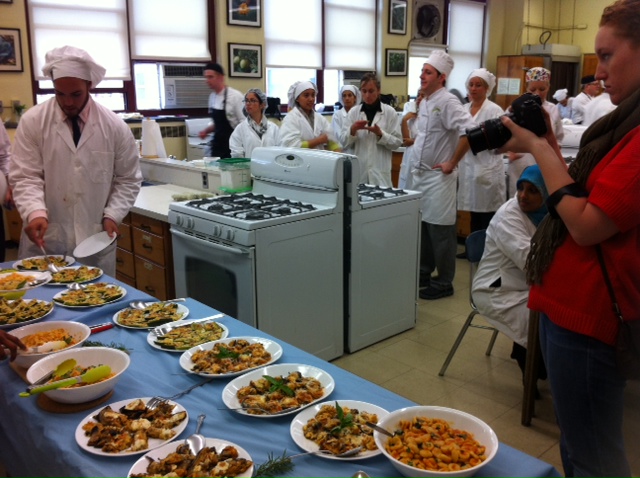 Upon demo completion, Queens professor Clare Consiglio announced that she would like to incorporate one of the day’s recipes, stuffed zucchini, into the end of semester buffet event that will be also attended by diabetic outpatients from The New York Hospital Queens Cardiac Health Center. The Queens students will prepare a series healthy dishes including the zucchini dish, and in Prof. Consiglio’s words “…they learned much about modifying recipes from the team at Apicius” during the workshop demo that experimented with healthy and creative alternatives to traditional Tuscan recipes.