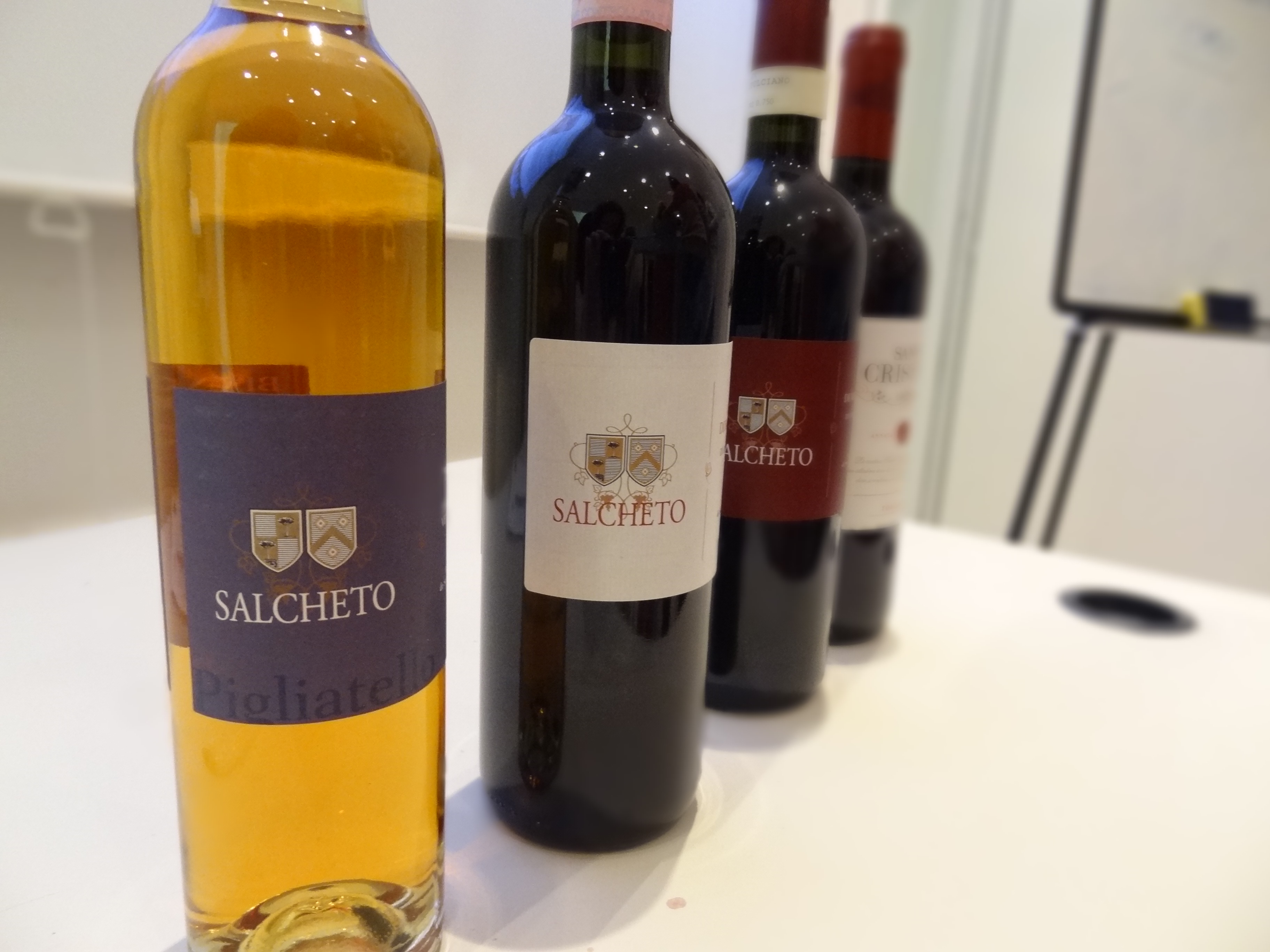 Most of the Salcheto vineyards contain the varietal Prugnolo Gentile, which is a clone of the Sangiovese grape used to make the Vino Nobile de Montepulciano. Salcheto also produces varietals of Canaiolo, Mammolo, Colorino, and Merlot that are grown in specific areas of the vineyards since 1999. The first part of the vineyards extends for 38 acres near their farmhouse. Another 26-acre area in Chiusi, 8 miles from Salcheto, is where Salcheto produces the Chianti Colli Senesi and Pigliatello sweet wine.